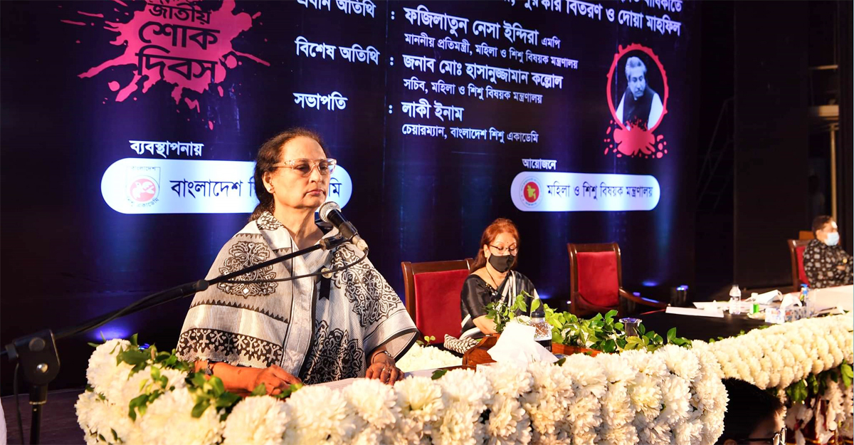 সোমবার (১৫ আগস্ট) ঢাকায় বাংলাদেশ শিশু একাডেমির মিলনায়তনে মহিলা ও শিশু বিষয়ক মন্ত্রণালয় আয়োজিত জাতির পিতা বঙ্গবন্ধু শেখ মুজিবুর রহমানের ৪৭তম শাহাদাত বার্ষিকী ও জাতীয় শোক দিবস ২০২২ উপলক্ষে আলোচনা সভায় প্রধান অতিথির বক্তৃতায় তিনি একথা বলেন।