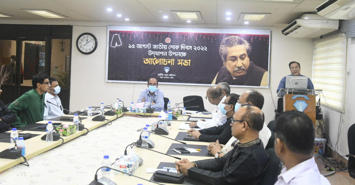 জাতির পিতা বঙ্গবন্ধু শেখ মুজিবুর রহমানের ৪৭তম শাহাদতবার্ষিকী ও শোক দিবস ঘিরে আজ আলোচনা সভা ও দোয়া মাহফিল অনুষ্ঠিত হয়। সেখানে দুদক সচিব মো. মাহবুব হোসেন এবং কমিশনের সহকারী পরিচালক থেকে মহাপরিচালক পর্যন্ত প্রায় তিন শতাধিক কর্মকর্তা কর্মচারী অংশগ্রহণ করেন।