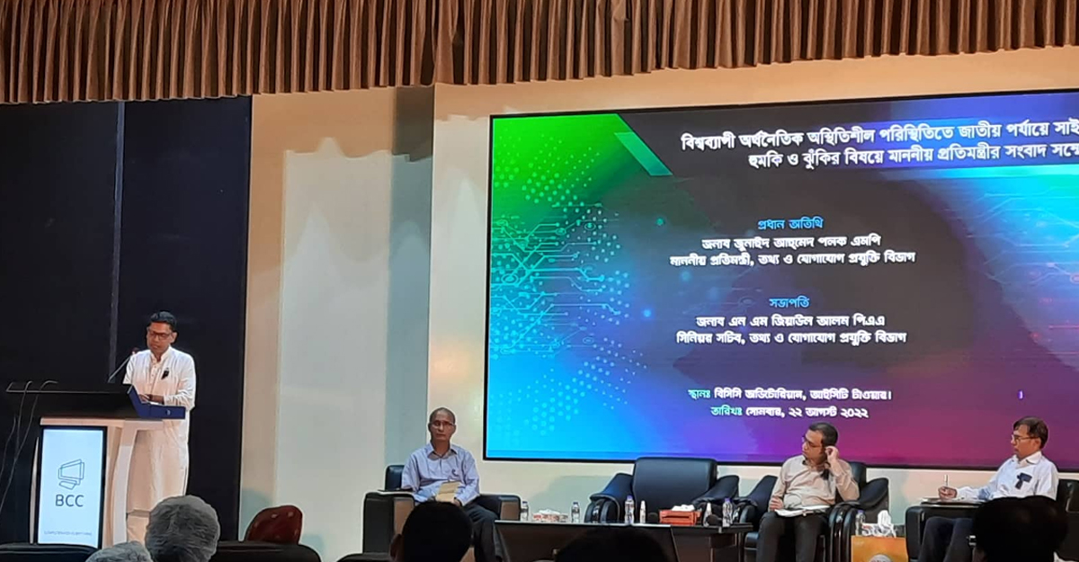 সোমবার (২২ আগস্ট) আগারগাঁওয়ের আইসিটি ভবনের বিসিসি অডিটোরিয়ামে তথ্য ও যোগাযোগ প্রযুক্তি বিভাগ আয়োজিত ‘বিশ্বব্যাপী অর্থনৈতিক অস্থিতিশীল পরিস্থিতিতে জাতীয় পর্যায়ে সাইবার হুমকি ও ঝুঁকি’ বিষয়ক সংবাদ সম্মেলনে এসব কথা বলেন তিনি।