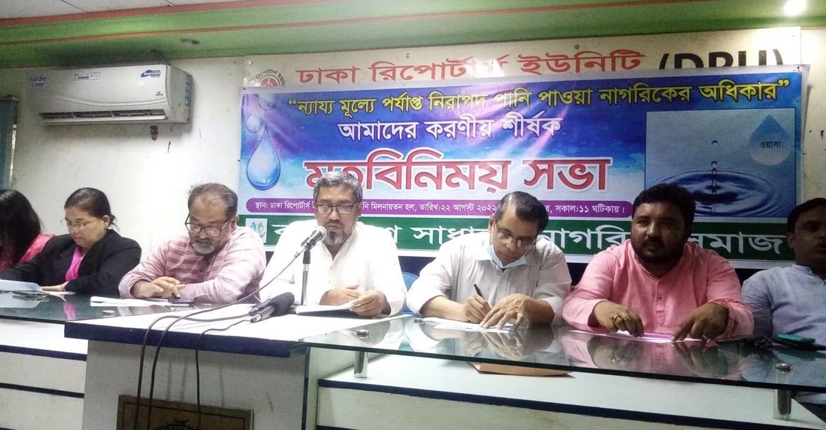 সোমবার (২২ আগস্ট) বেলা ১১টায় ঢাকা রিপোর্টার্স ইউনিটির সাগর রুনি মিলনায়তনে বাংলাদেশ সাধারণ নাগরিক সমাজ আয়োজিত ‘ন্যায্য মূল্যে পর্যাপ্ত নিরাপদ পানি পাওয়া নাগরিকের মৌলিক অধিকার’ শীর্ষক এক নাগরিক মতবিনিময় সভায় তিনি এসব কথা বলেন।