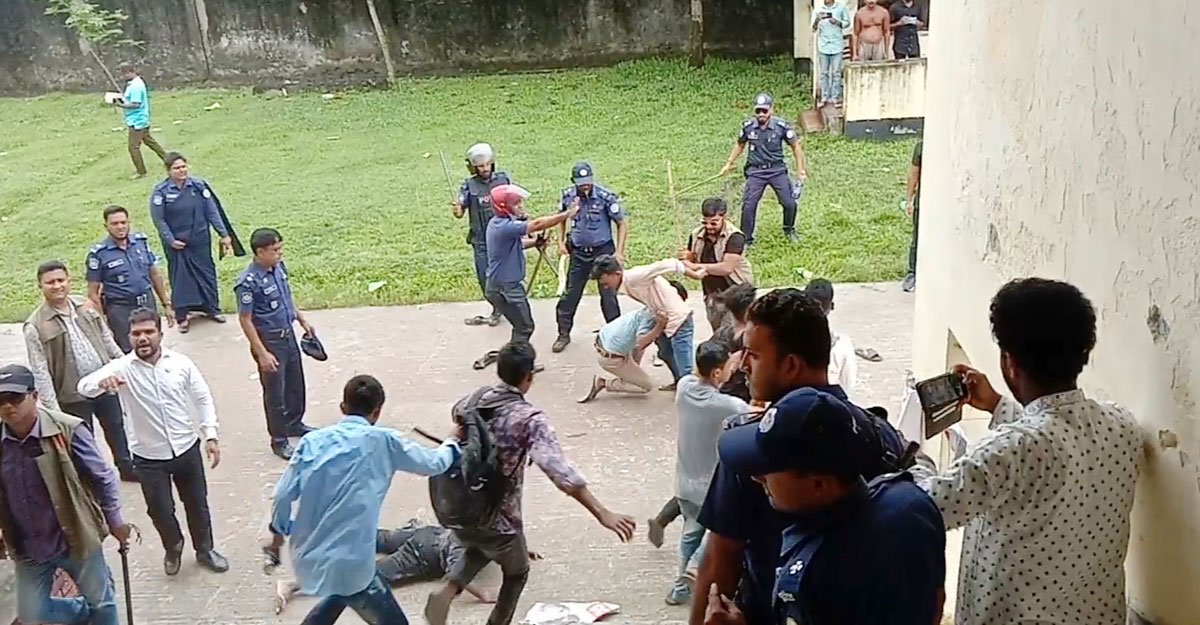 সেদিন শিল্পকলা ও আইনজীবী সমিতি এলাকায় দায়িত্ব পালন করা পুলিশের এক কর্মকর্তা নাম প্রকাশ না করে ঢাকা পোস্টকে বলেন, যখন বিক্ষোভ হচ্ছিল তখন ঘটনাস্থল শিল্পকলা একাডেমিতে ছিলেন স্থানীয় এমপি ধীরেন্দ্র দেবনাথ শম্ভু, জেলা প্রশাসক (ডিসি), পৌর মেয়র, মুক্তিযোদ্ধা কমান্ডার, বীর মুক্তিযোদ্ধা আব্দুল মোতালেব মৃধাসহ আওয়ামী লীগের নেতাকর্মীরা। বিক্ষুব্ধরা যাতে তাদের কাছে পৌঁছাতে না পারে এবং ১৫ আগস্টের আলোচনা ভণ্ডুল করতে না পারে, এমনকি বড় ধরনের সংঘর্ষ ও প্রাণহানি এড়ানোর জন্য পুলিশ অ্যাকশনে যায়।