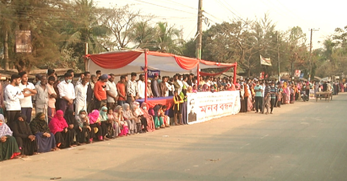 উচ্ছেদের আগে পুনর্বাসনের দাবিতে মানববন্ধন