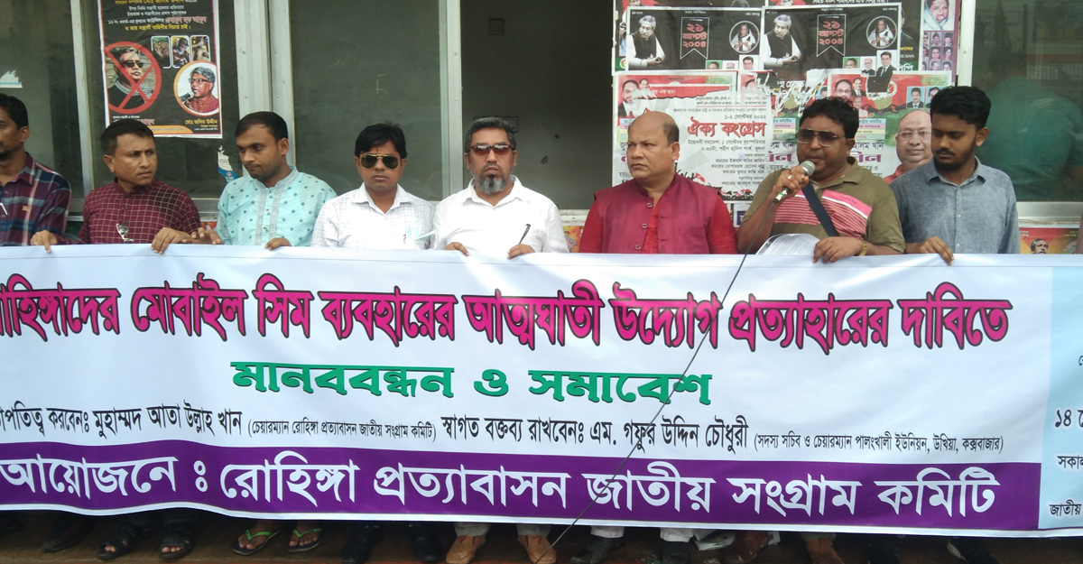 রোহিঙ্গা নাগরিকদের মোবাইল সিম প্রদানের সিদ্ধান্ত বাতিলের দাবিতে মানববন্ধন করেছে রোহিঙ্গা প্রত্যাবাসন জাতীয় সংগ্রাম কমিটি। তারা বলেন, বর্তমান টেলিযোগাযোগ মন্ত্রী এবং বিটিআরসি চেয়ারম্যান প্রয়োজনীয় ব্যবস্থা গ্রহণে ব্যর্থ হয়েছে। সেই দায়ভার ঘোচাতে তারা রোহিঙ্গাদের বৈধভাবে সিম দেওয়ার পাঁয়তারা করেছে।