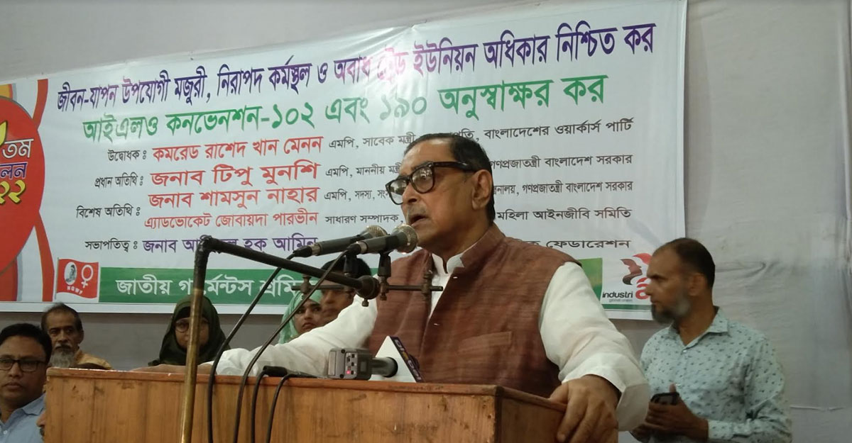 মেনন বলেন, ২০১৮ সালে মজুরি বৃদ্ধির পর বলা হয়েছিল ৩ বছর পর মজুরি বাড়ানো হবে। এখন সময় এসেছে মজুরি বৃদ্ধির। তাই শ্রমিকদের পাশাপাশি জাতীয় ন্যূনতম মজুরি নির্ধারণ করা এ সময় গুরুত্বপূর্ণ।
