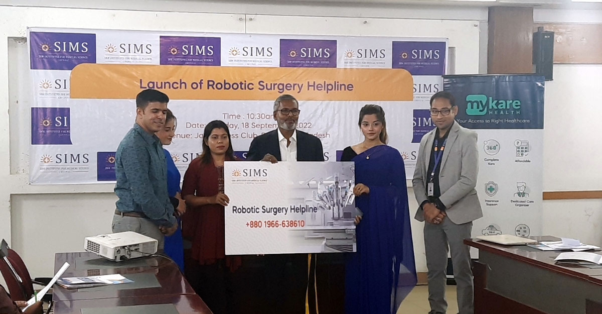 রোববার (১৮ সেপ্টেম্বর) জাতীয় প্রেস ক্লাবের তফাজ্জল হোসেন মানিক মিয়া হলে আয়োজিত সংবাদ সম্মেলনে এ তথ্য জানান সিমস হাসপাতালের ইনস্টিটিউট অব রেনাল সাইন্স অ্যান্ড ট্রান্সপ্ল্যান্টেশনের ইউরোলজি বিভাগের পরিচালক ও সিনিয়র কনসালট্যান্ট ডা. মুধু ভিরামানি। হাসপাতালের রোবোটিক সার্জারি হেল্পলাইন নম্বরটি হচ্ছে +৮৮০১৯৬৬৬৩৮৬১০।