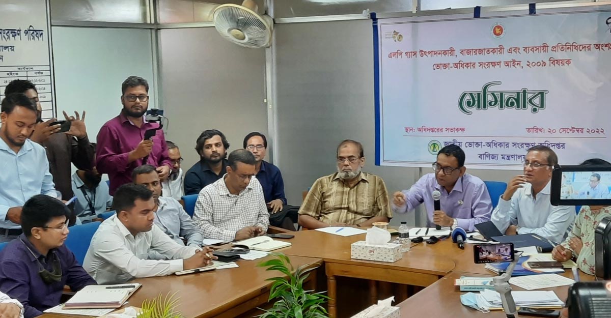 মঙ্গলবার (২০ সেপ্টেম্বর) রাজধানীর কারওয়ান বাজারে ভোক্তা অধিদপ্তরের সভাকক্ষে ভোক্তা-অধিকার সংরক্ষণ আইন, ২০০৯ বাস্তবায়নের লক্ষ্যে এলপি গ্যাস উৎপাদনকারী, বাজারজাতকারী ও ব্যবসায়ী প্রতিনিধিদের সঙ্গে এক সেমিনারে এ সিদ্ধান্তের কথা জানান অধিদপ্তরের মহাপরিচালক এ এইচ এম সফিকুজ্জামান।