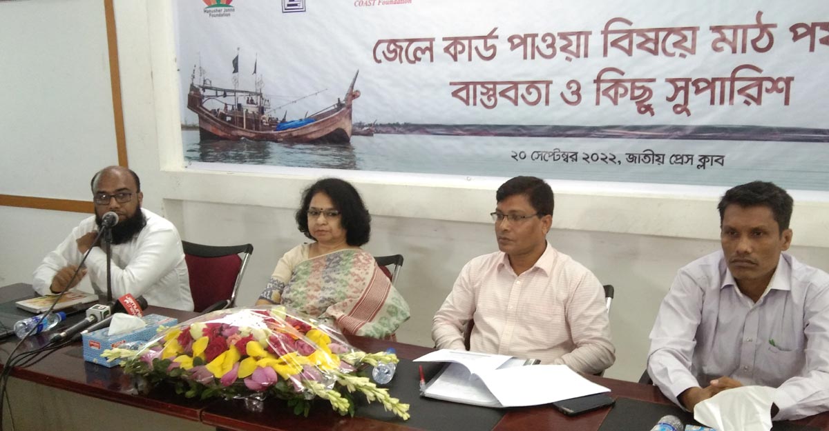 মঙ্গলবার (২০ সেপ্টেম্বর) জাতীয় প্রেস ক্লাবের তফাজ্জল হোসেন মানিক মিয়া মিলনায়তনে ‘জেলে কার্ড পাওয়া বিষয়ে মাঠপর্যায়ের বাস্তবতা ও কিছু সুপারিশ’ শীর্ষক আলোচনা সভায় বক্তারা এ সুপারিশ করেন।