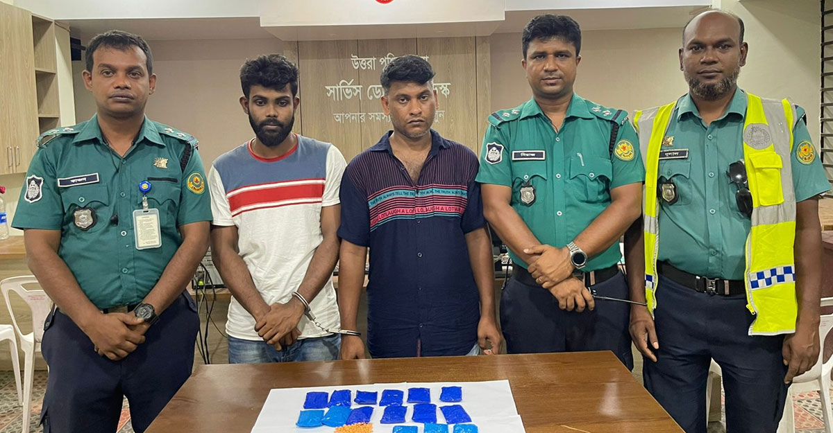 মঙ্গলবার (২০ সেপ্টেম্বর) মাঝ রাতে উত্তরা পশ্চিম থানার ৯ নম্বর সেক্টরের আব্দুল্লাহপুর পুলিশ বক্সের সামনে থেকে তাদের গ্রেপ্তার করা হয়।