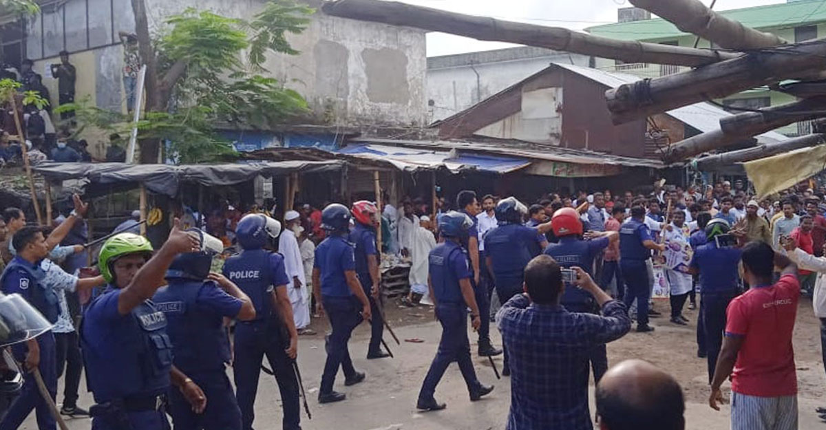 কর্মসূচি থেকে বিক্ষোভ মিছিল নিয়ে এগোতে চাইলে পুলিশ বিএনপির নেতা-কর্মীদের বাধা দেয়। এ সময় তারা পুলিশকে লক্ষ্য করে ইটপাটকেল ছুড়তে শুরু করে। পরিস্থিতি নিয়ন্ত্রণে পুলিশও রাবার বুলেট ও টিয়ার শেল নিক্ষেপ করে। ঘটনাস্থলে কয়েকটি মোটরসাইকেলে আগুন দেওয়া হয়।