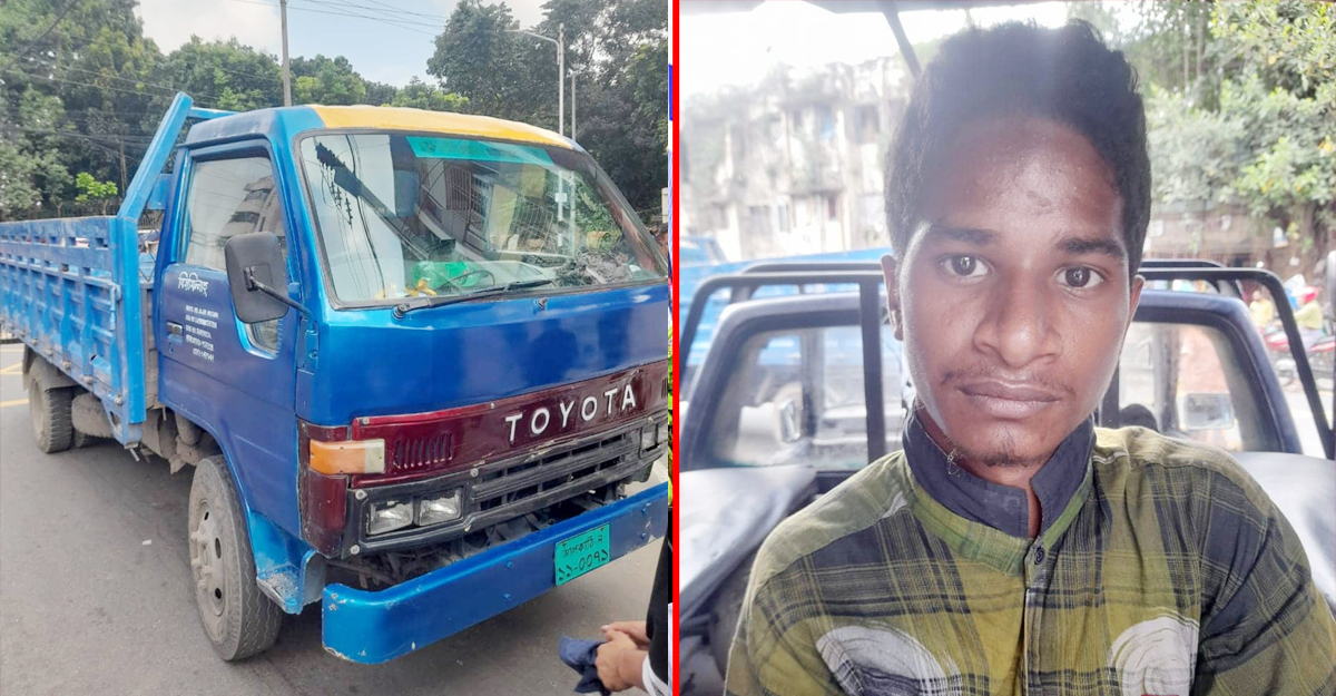 জব্দ করা ট্রাক ও অভিযুক্ত হেলপার জিহাদ খান