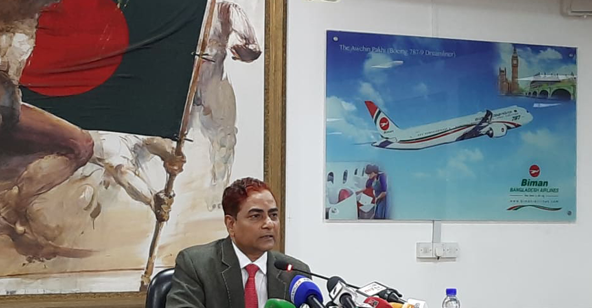 সোমবার (০১ মার্চ) বিকেল ৩টায় কুর্মিটোলায় বিমান বাংলাদেশের প্রধান কার্যালয় বলাকায় এক সংবাদ সম্মেলনে একথা বলেন রাষ্ট্রীয় পতাকাবাহী এয়ারলাইনসটির ব্যবস্থাপনা পরিচালক।