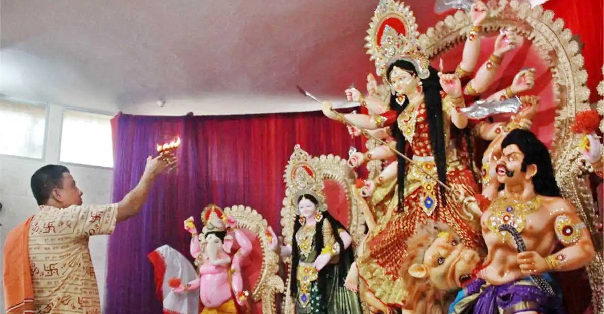 ষষ্ঠীপূজার মধ্য দিয়ে গতকাল সূচনা হয়েছিল সনাতন ধর্মাবলম্বীদের সর্ববৃহৎ ধর্মীয় উৎসব দুর্গাপূজার। এদিন সনাতন ধর্মাবলম্বীদের দুর্গতিনাশিনী দেবীর অধিষ্ঠান, আমন্ত্রণ ও অধিবাসের মধ্য দিয়ে শুরু হয়েছে দুর্গাপূজার মূল আনুষ্ঠানিকতা।