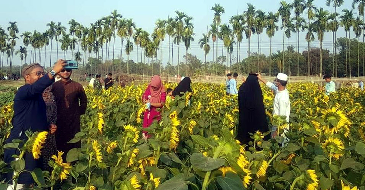 সরেজমিনে চট্টগ্রামের হাটহাজারী উপজেলার পশ্চিম দেওয়ানপুর গিয়ে দেখা যায়, উপজেলা আঞ্চলিক কৃষি গবেষণা কেন্দ্রর মাঠে এক একরের বেশি জমিতে সূর্যমুখী চাষ হয়েছে। সূর্যমুখী ফুলের হলুদ আভায় ছেয়ে যাওয়া বিস্তীর্ণ মাঠের নজরকাড়া সৌন্দর্যে প্রতিদিনই ছুটে আসছেন শত শত মানুষ। তারা ছবি তুলছেন, মাঠে ঘুরে বেড়াচ্ছেন।