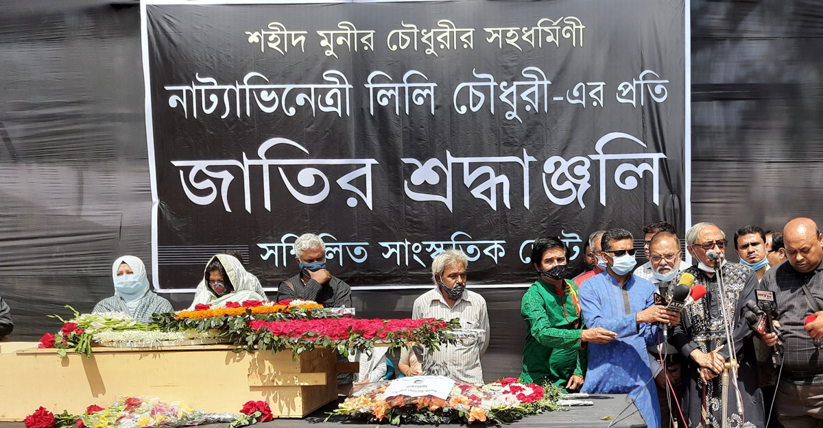 শহীদ মুনীর চৌধুরীর স্ত্রী, প্রয়াত সাংবাদিক মিশুক মুনীরের মা ও নাট্যাভিনেত্রী লিলি চৌধুরীকে কেন্দ্রীয় শহীদ মিনারে শেষ শ্রদ্ধা জানিয়েছেন সর্বস্তরের মানুষ।