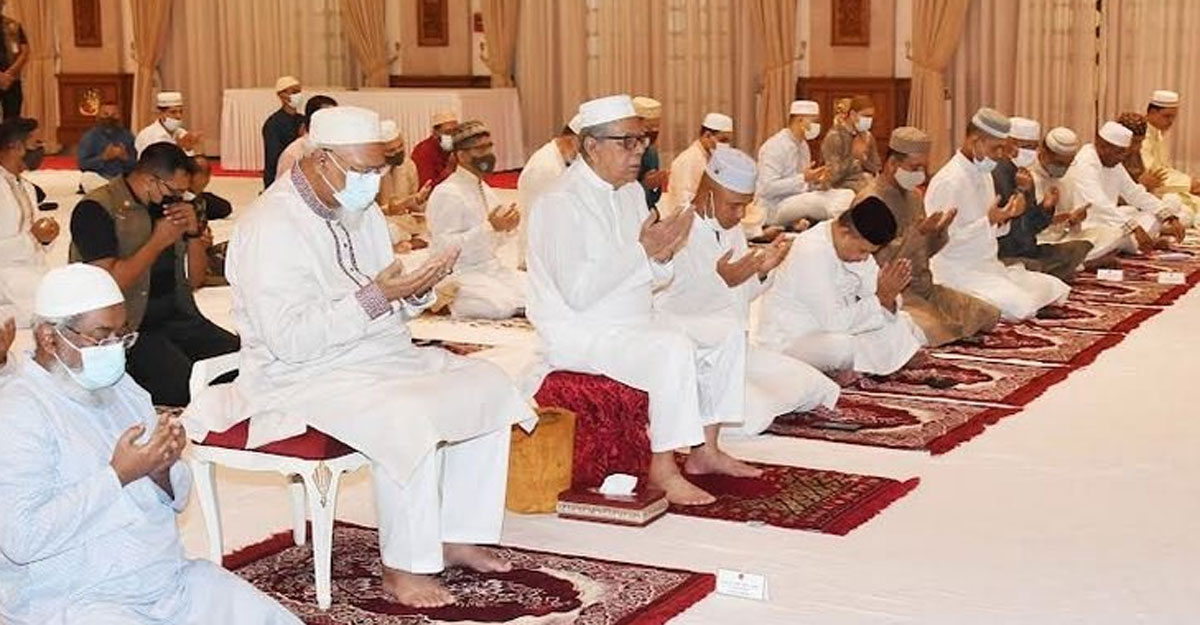 করোনাভাইরাসের কারণে সামাজিক দূরত্ব বজায় রেখে সীমিত পরিসরে আসরের নামাজের পর মিলাদ ও দোয়া-মাহফিল অনুষ্ঠিত হয়। মিলাদ শেষে মোনাজাত পরিচালনা করেন বঙ্গভবন জামে মসজিদের পেশ ইমাম মাওলানা মুহাম্মদ সাইফুল কবির।