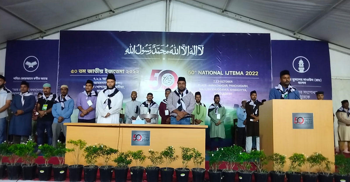 আহমদীয়া মুসলিম জামাতের যুব সংঠন মজলিস খোদ্দামুল আহমদীয়া বাংলাদেশের ৫০তম বার্ষিক ইজতেমা অনুষ্ঠিত হয়েছে। শুক্রবার (৭ অক্টোবর) পঞ্চগড় শহরের আহমদনগরে শান্তিপূর্ণভাবে অনুষ্ঠিত হয়।