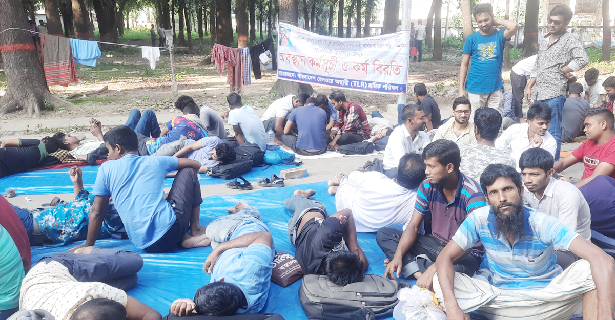 চাকরি স্থায়ীকরণ, আউটসোর্সিং প্রথা বাতিলসহ ৬ দফা দাবিতে অবস্থান কর্মসূচি পালন করছেন বাংলাদেশ রেলওয়েতে নিয়োগ পাওয়া অস্থায়ী শ্রমিকরা (টিএলআর)। টানা চার দিন ধরে আন্দোলন চালিয়ে আসলেও রেলওয়ে কর্তৃপক্ষের কোনো সাড়া পাচ্ছেন না তারা।