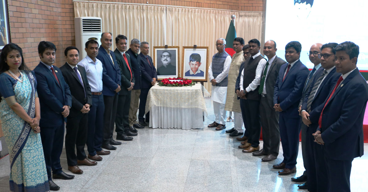 মঙ্গলবার (১৮ অক্টোবর) সন্ধ্যায় দূতাবাসের বঙ্গবন্ধু হল মিলনায়তনে জাতির পিতা বঙ্গবন্ধু শেখ মুজিবুর রহমান ও শেখ রাসেলের প্রতিকৃতিতে শ্রদ্ধাঞ্জলি অর্পণ করেন হাইকমিশনার মোস্তাফিজুর রহমান। দূতাবাস কর্মকর্তারাও শ্রদ্ধাঞ্জলি নিবেদন করেন।