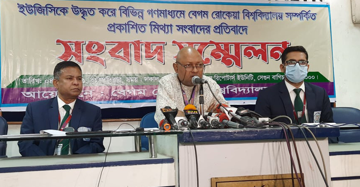 এসময় বিশ্ববিদ্যালয় মঞ্জুরি কমিশনকে (ইউজিসি) উদ্ধৃত করে গণমাধ্যমে প্রকাশিত খবরকে মিথ্যা ও ভিত্তিহীন বলে দাবি করেন তিনি। উপাচার্য বলেন, তদন্ত কমিটির প্রতিবেদন এখনো আমরা পাইনি। এর আগেই গণমাধ্যমে এমন খবর প্রকাশে ক্ষোভ প্রকাশ করেন তিনি।