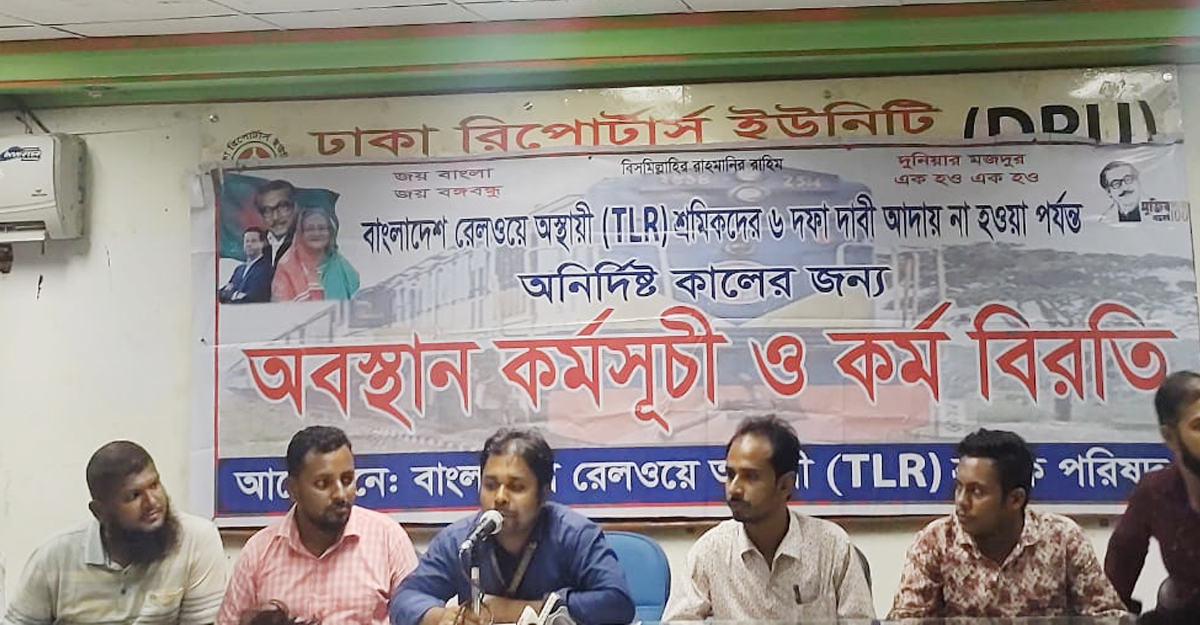 বৃহস্পতিবার (২৭ অক্টোবর) বিকেলে ঢাকা রিপোর্টার্স ইউনিটির সাগর-রুনী মিলনায়তনে বাংলাদেশ রেলওয়ে অস্থায়ী (টিএলআর) শ্রমিক পরিষদ আয়োজিত সংবাদ সম্মেলনে এ ঘোষণা দেন রেলওয়ে শ্রমিকরা। এ সময় ১৩ দিন ধরে চলমান আন্দোলন ২০ নভেম্বর পর্যন্ত স্থগিত ঘোষণা করে শ্রমিক পরিষদ।