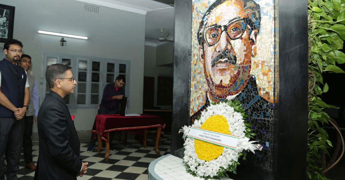 বঙ্গবন্ধুর প্রতিকৃতিতে ভারতের নতুন হাইকমিশনারের শ্রদ্ধা