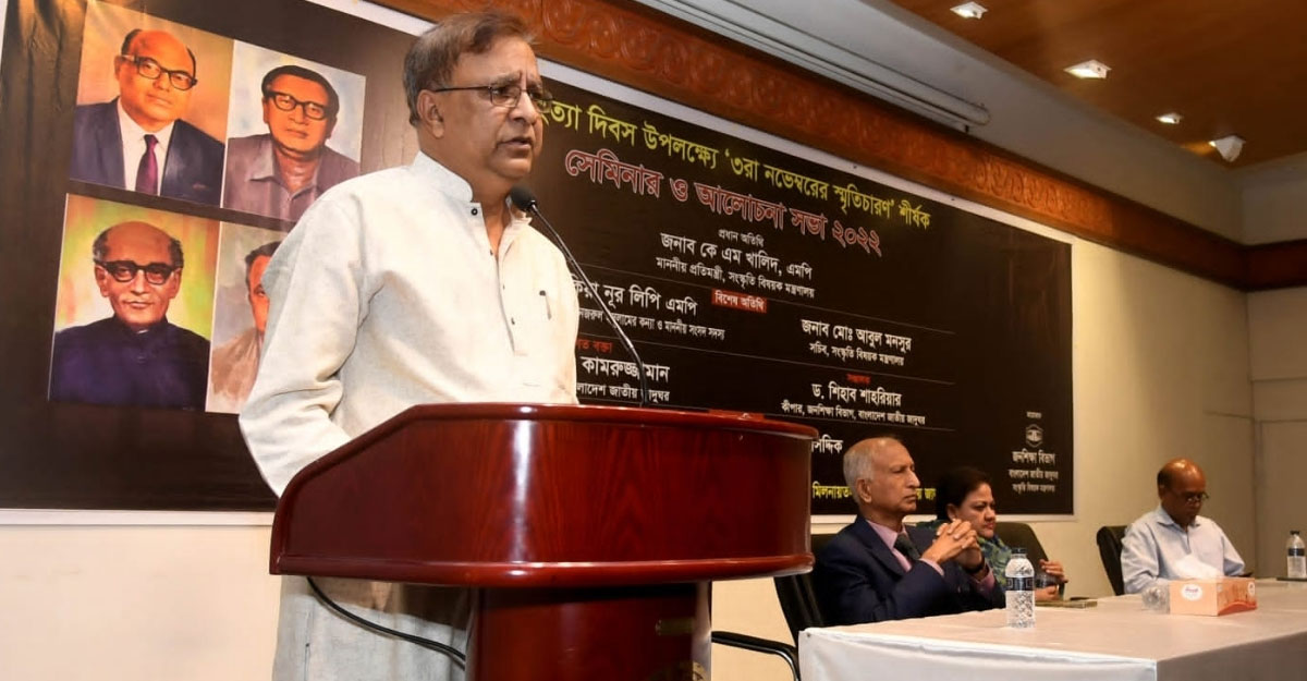 সংস্কৃতি প্রতিমন্ত্রী কে এম খালিদ বলেছেন, জাতির পিতা বঙ্গবন্ধু শেখ মুজিবুর রহমানকে সপরিবারে হত্যার ধারাবাহিকতায় ঘটানো হয় জেল হত্যাকাণ্ড। ১৯৭৫ সালের ১৫ আগস্টের নির্মম হত্যাকাণ্ডের পর জাতীয় নেতা সৈয়দ নজরুল ইসলাম, তাজউদ্দিন আহমেদ, এএইচএম কামারুজ্জামান ও ক্যাপ্টেন মনসুর আলীকে ওই বছরের ৩ নভেম্বর ঢাকা কেন্দ্রীয় কারাগারের অভ্যন্তরে নির্মমভাবে হত্যা করা হয়। জাতির পিতাকে সপরিবারে হত্যার পর জাতির ইতিহাসে এটি দ্বিতীয় কলঙ্কজনক অধ্যায়।