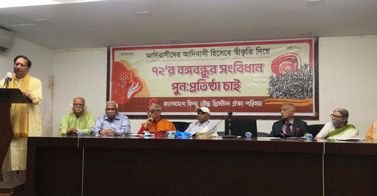 শনিবার (৫ নভেম্বর) জাতীয় প্রেস ক্লাবের জহুর হোসেন চৌধুরী হলে বাংলাদেশ হিন্দু-বৌদ্ধ-খ্রিষ্টান ঐক্য পরিষদ আয়োজিত ‘আদিবাসীদের আদিবাসী পরিচয়ে স্বীকৃতি দিয়ে ৭২-র বঙ্গবন্ধুর সংবিধান পুনঃপ্রতিষ্ঠা চাই’ শীর্ষক আলোচনা সভায় তিনি এসব কথা বলেন।