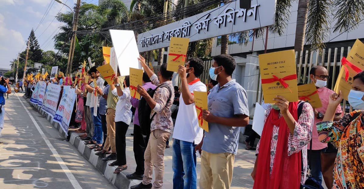 পিএসসিতে ‘লাল ফিতায় বাঁধা কোর্ট ফাইল’ নিয়ে প্রতিবাদ