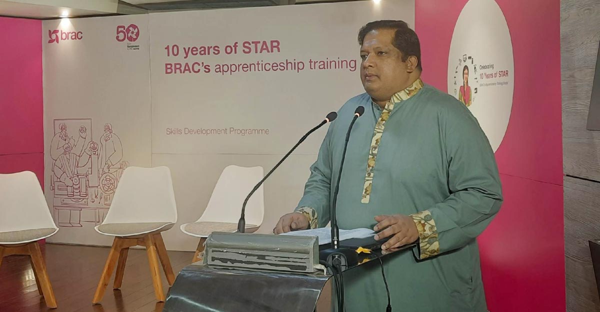 বৃহস্পতিবার (১০ নভেম্বর) রাজধানীর ব্র্যাক সেন্টারে আয়োজিত ব্র্যাকের স্কিল ট্রেনিং ফর অ্যাডভান্সিং রিসোর্সেস প্রোগ্রামের (স্টার) ১০ বছর পূর্তি উদযাপন অনুষ্ঠানে প্রধান অতিথির বক্তব্যে এ কথা বলেন তিনি।
