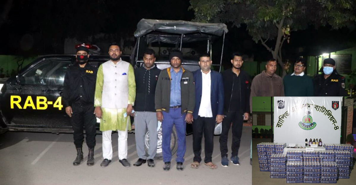 শেওড়াপাড়ায় বিয়ার ও মদসহ আটক ৭