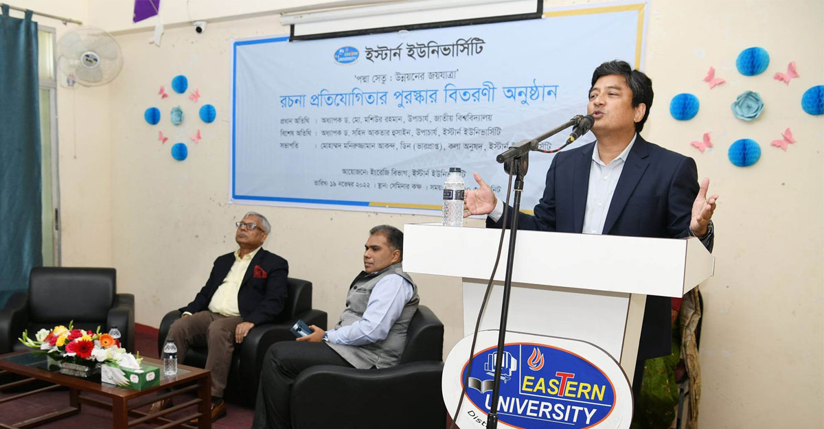 শনিবার (১৯ নভেম্বর) সাভারের বিরুলিয়ায় ইস্টার্ন ইউনিভার্সিটিতে ‘পদ্মা সেতু : উন্নয়নের অগ্রযাত্রা’ শীর্ষক রচনা প্রতিযোগিতার