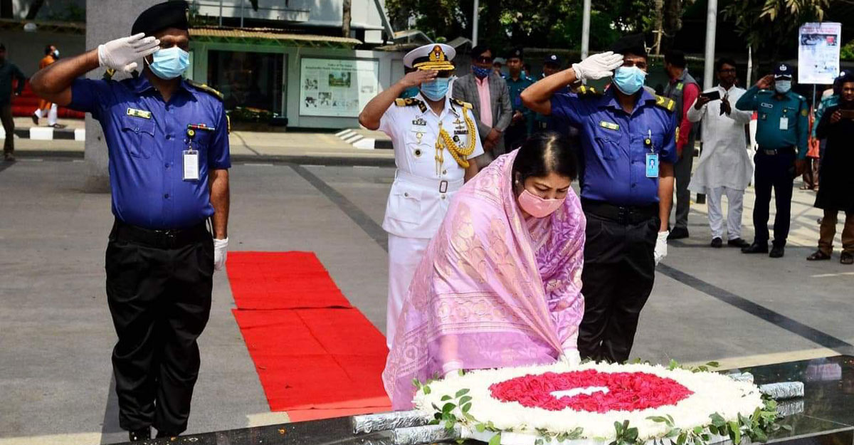 ফুল দিয়ে জাতির পিতার প্রতিকৃতিতে স্পিকারের শ্রদ্ধা