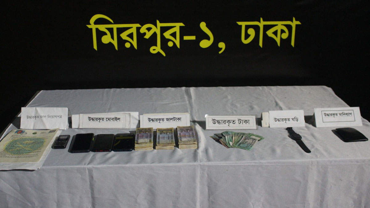 শুক্রবার (২ ডিসেম্বর) রাতে রাজধানীর কাফরুল এলাকায় র্যাব-৪ এর একটি দল গোপন সংবাদের ভিত্তিতে অভিযান পরিচালনা করে তাদের আটক করে। এ সময় তাদের কাছ থেকে ৪ লাখ ৮৭ হাজার টাকার জালনোট, ১টি ভুয়া নিয়োগপত্র, ৩টি মোবাইল, ৩টি সিমকার্ড এবং নগদ ২৭ হাজার ২৯৭ টাকা উদ্ধার করা হয়।