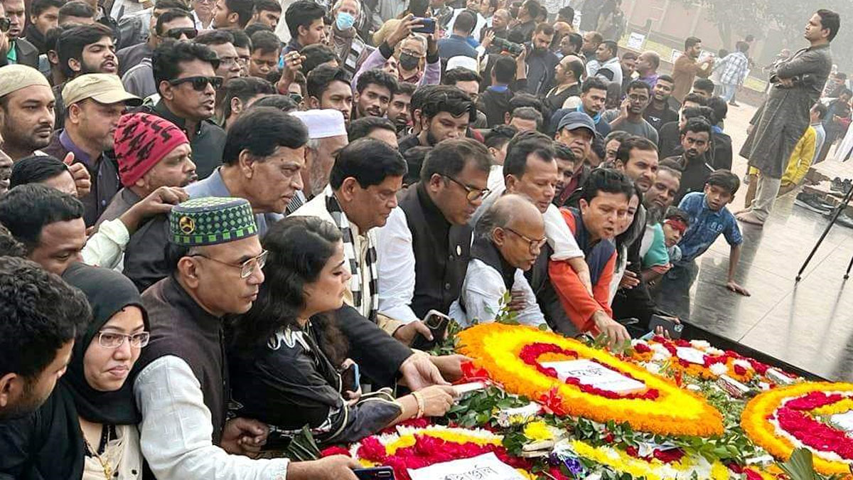 বুধবার (১৪ ডিসেম্বর) সকালে শহীদ বুদ্ধিজীবী স্মৃতিসৌধ ও বঙ্গবন্ধু শেখ মুজিবুর রহমানের প্রতিকৃতিতে পুষ্পস্তবক অর্পণ করা হয়।