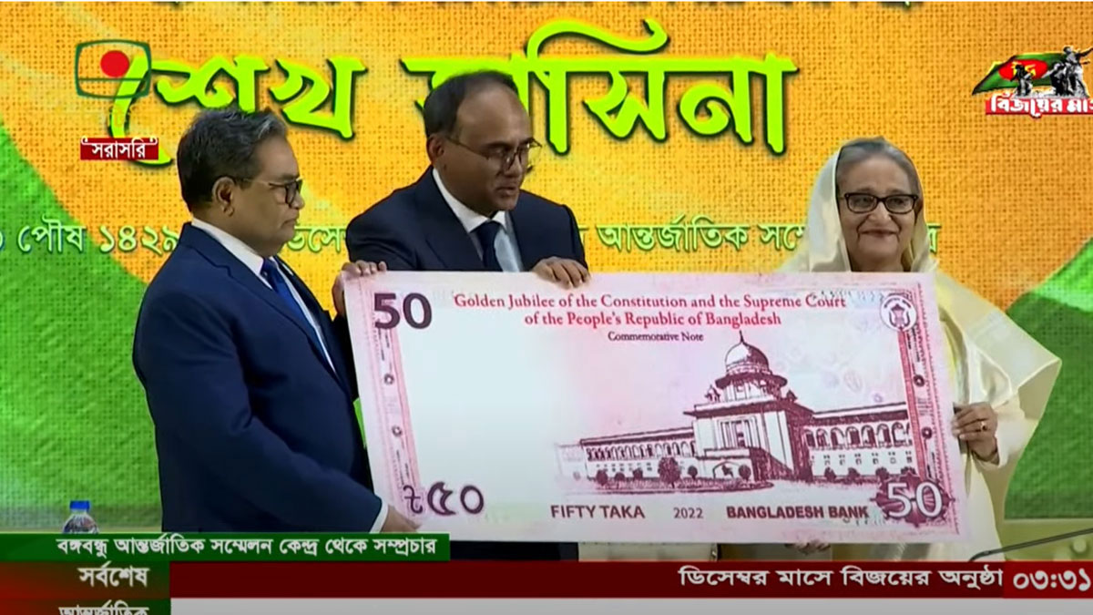রোববার (১৮ ডিসেম্বর) বিকেলে বঙ্গবন্ধু আন্তর্জাতিক সম্মেলন কেন্দ্রে সুপ্রিম কোর্টের সুবর্ণজয়ন্তী অনুষ্ঠানে তিনি এসব উন্মোচন করেন। এ সময় বাংলাদেশ ব্যাংকের গভর্নরসহ সংশ্লিষ্ট বিভাগের প্রধানেরা উপস্থিত ছিলেন।