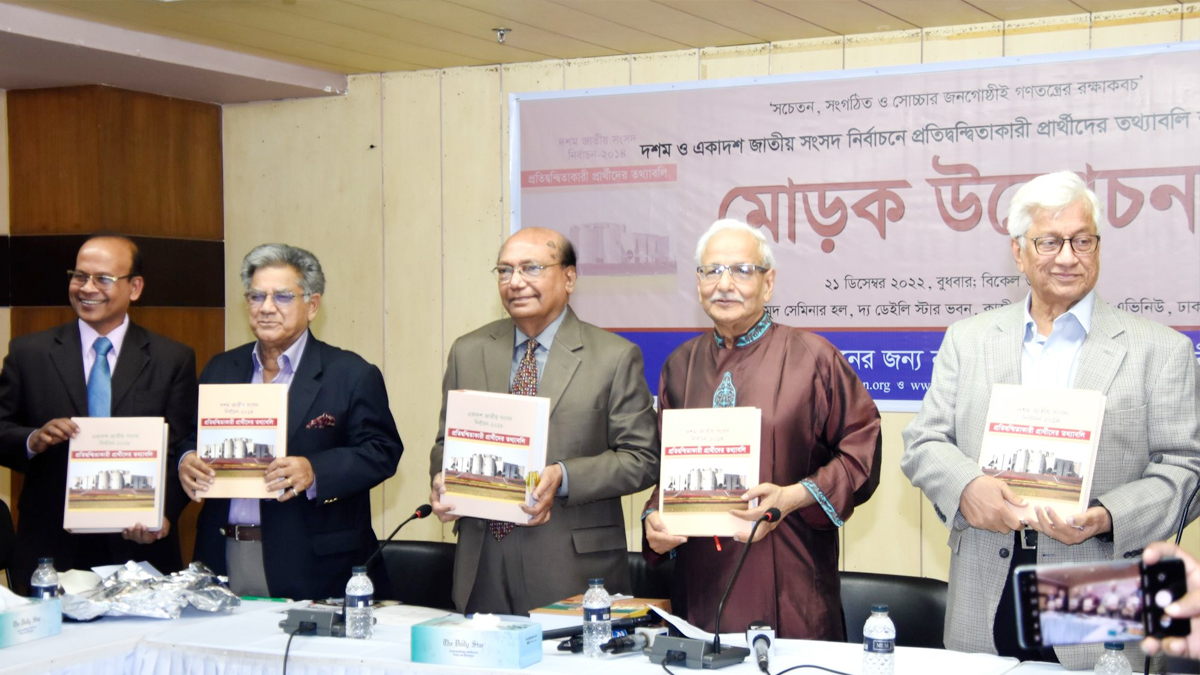 বুধবার (২১ ডিসেম্বর) দ্য ডেইলি স্টার সেন্টারে আয়োজিত সুশাসনের জন্য নাগরিক (সুজন) ও আগামী প্রকাশনীর উদ্যোগে দশম ও একাদশ জাতীয় সংসদ নির্বাচনে প্রতিদ্বন্দ্বিতাকারী প্রার্থীদের তথ্যাবলি শীর্ষক গ্রন্থের মোড়ক উন্মোচন অনুষ্ঠানে তিনি এসব কথা বলেন।
