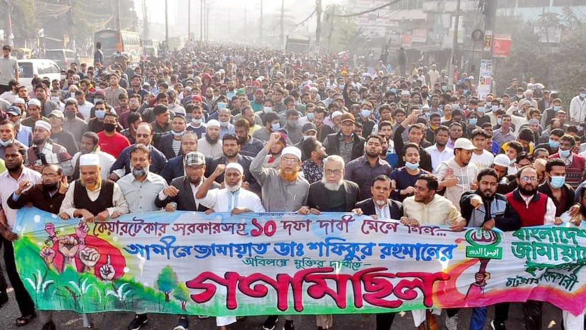 কেন্দ্র ঘোষিত কর্মসূচির অংশ হিসেবে শনিবার সকালে চট্টগ্রাম নগর জামায়াত মিছিল করে। এতে নগর জামায়াতের আমির মাওলানা মুহাম্মদ শাহজাহান, সিনিয়র নায়েবে আমির নজরুল ইসলাম ও সাধারণ সম্পাদক নুরুল আমিনসহ নগর জামায়াতের নেতারা অংশ নেন।