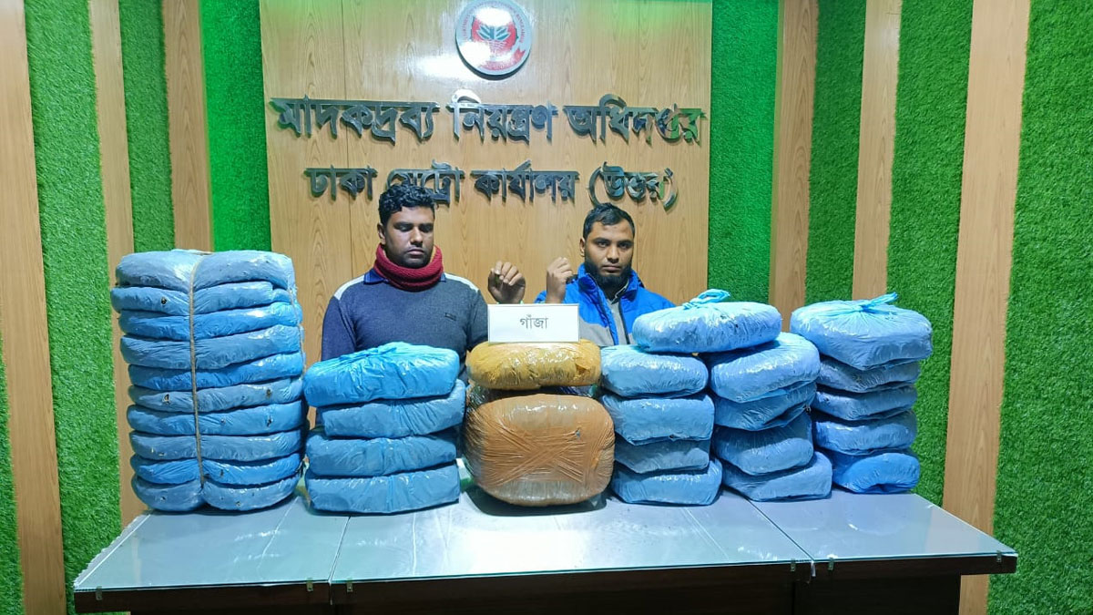 কোমল পানীয় পরিবহনের আড়ালে গাঁজার পাইকারি ব্যবসার অভিযোগে দুজনকে গ্রেপ্তার করেছে মাদকদ্রব্য নিয়ন্ত্রণ অধিদপ্তর (ডিএনসি)। এসময় ৩৪ কেজি গাঁজা ও একটি কাভার্ডভ্যান জব্দ করা হয়।