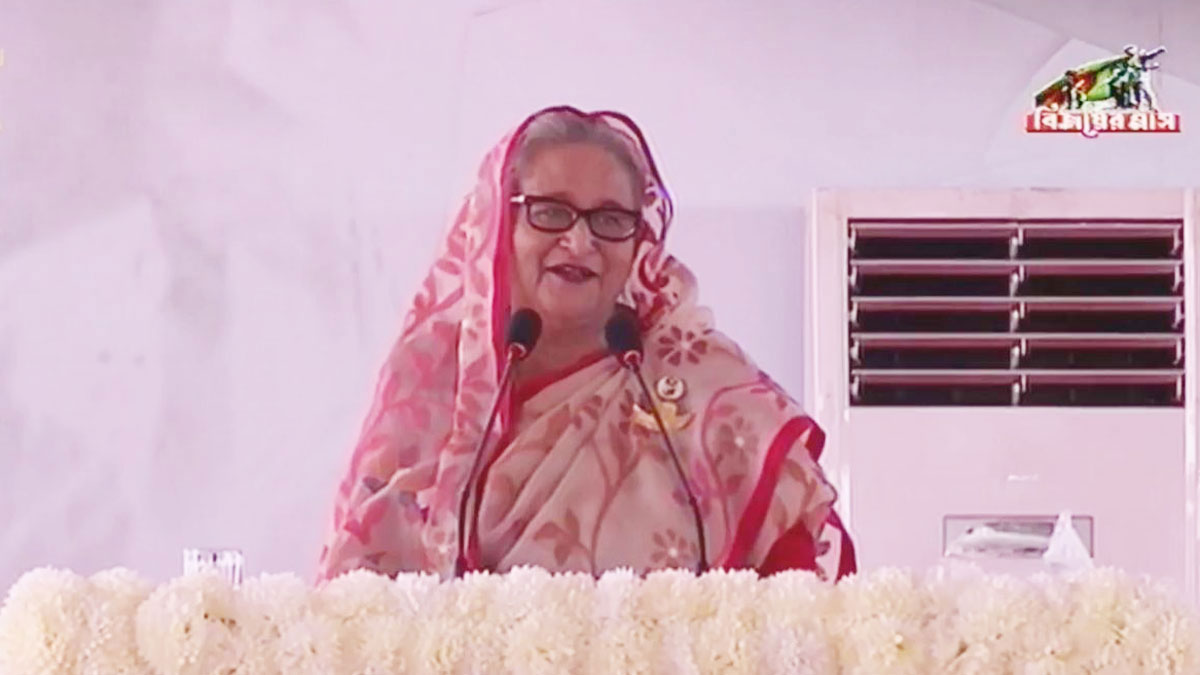 মেট্রোরেল উদ্বোধন উপলক্ষ্যে আয়োজিত সুধি সমাবেশে বক্তব্য রাখছেন প্রধানমন্ত্রী শেখ হাসিনা।
