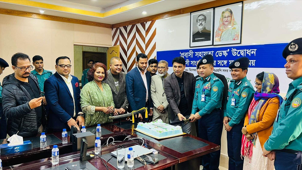 বিভিন্ন দেশের প্রবাসী সাংবাদিকদের উপস্থিতিতে কেক কেটে সহায়তা ডেস্কের উদ্বোধন করেন রংপুর মেট্রোপলিটনের পুলিশ কমিশনার নুরে আলম মিনা।