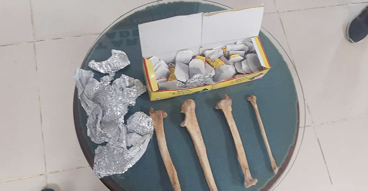 আলমগীর শিমুল বলেন, বুধবার রাত ১১টার দিকে হযরত শাহজালাল আন্তর্জাতিক বিমানবন্দরের বহির্গমন টার্মিনালের ৬ নম্বর গেটের কাছে একজন চীনা নাগরিকের গতিবিধি সন্দেহজনক মনে হলে তাকে অনুসরণ করে বিমানবন্দর আর্মড পুলিশ। পরে আর্মড পুলিশের অফিসে নিয়ে এসে তাকে জিজ্ঞাসাবাদ করা হয়। এ সময় তল্লাশি করে তার কাছ থেকে চারটি হাড় উদ্ধার করা হয়। টি-ব্যাগের দুটি প্যাকেট জোড়া দিয়ে ভেতরে টি-ব্যাগের সঙ্গে ফয়েল পেপারে মোড়ানো ছিল হাড়গুলো।