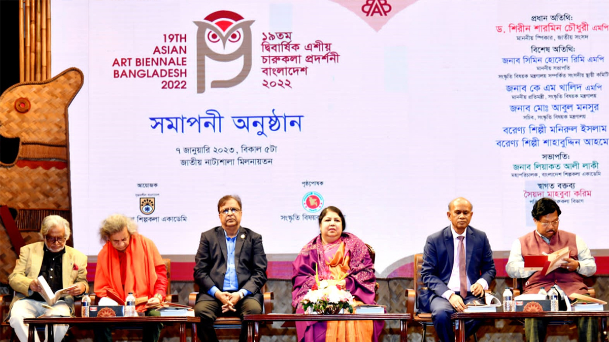 শনিবার (৭ জানুয়ারি) সন্ধ্যায় রাজধানীর বাংলাদেশ শিল্পকলা একাডেমির জাতীয় নাট্যশালা মিলনায়তনে সংস্কৃতি বিষয়ক মন্ত্রণালয়ের পৃষ্ঠপোষকতায় বাংলাদেশ শিল্পকলা একাডেমি আয়োজিত '১৯তম দ্বি-বার্ষিক এশীয় চারুকলা প্রদর্শনী বাংলাদেশ ২০২২' এর সমাপনী অনুষ্ঠানে তিনি এসব কথা বলেন।