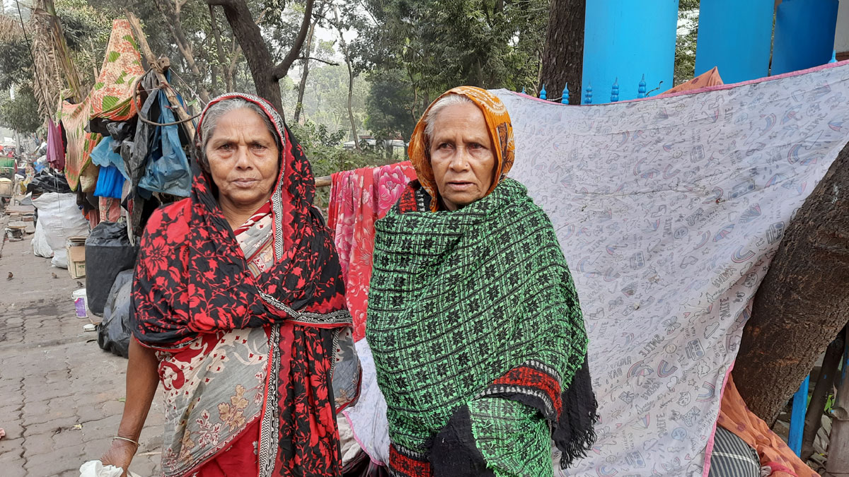 ওসিয়তের সঙ্গে আলাপের পর কয়েক কদম সামনে গিয়ে দেখা যায় ফুটপাতে কাঁথা গায়ে জবুথবু হয়ে শুয়ে আছেন এক বৃদ্ধা। অসুস্থতার কারণে কথা বলার মতো অবস্থায় নেই তিনি। পাশে থাকা মেয়ে পুষ্পা বলেন, ‘মায়ের শরীরডা ভালা না। শীতে অসুস্থ হই গেছে। গরীবের এ দুনিয়ায় কেউ নাই। বাড়ি-ঘর থাইকাও নাই। অন্যের বাসায় কাজ করলে পেটে খাবার জোটে। শীতও আমগো মাইরা ফেইলব মনে হইতাছে।’