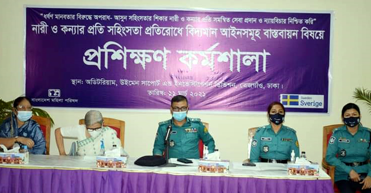 বাংলাদেশ মহিলা পরিষদের আয়োজনে নারী ও কন্যার প্রতি সহিংসতা প্রতিরোধে বিদ্যমান আইন বাস্তবায়ন বিষয়ে এ প্রশিক্ষণ কর্মশালা অনুষ্ঠিত হয়। এই কর্মশালায় অংশগ্রহণ করেন ঢাকা মেট্রোপলিটন পুলিশের উইমেন্স সাপোর্ট অ্যান্ড ইনভেস্টিগেশন বিভাগে কর্মরত পুলিশ কর্মকর্তারা।