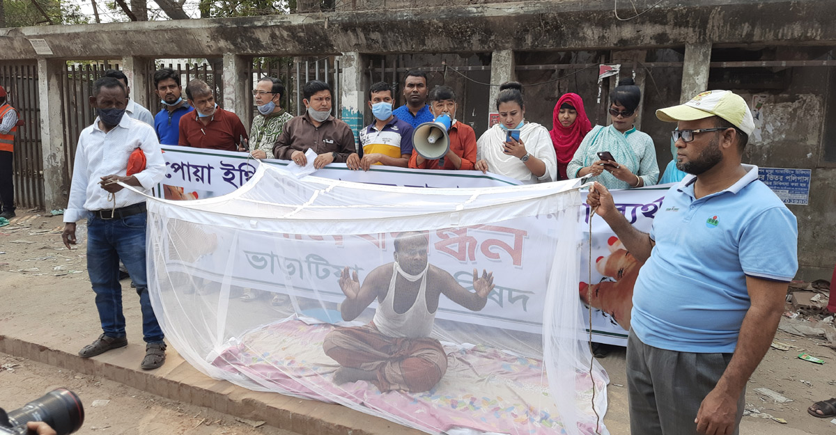 ফুটপাতে মশারি টাঙিয়ে মশার উপদ্রব থেকে রক্ষার দাবি