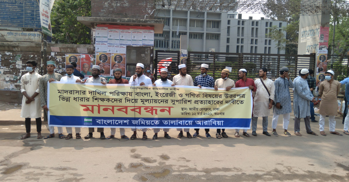 প্রেসক্লাবে বাংলাদেশ জমিয়তে তালাবায়ে আরাবিয়ার মানববন্ধন