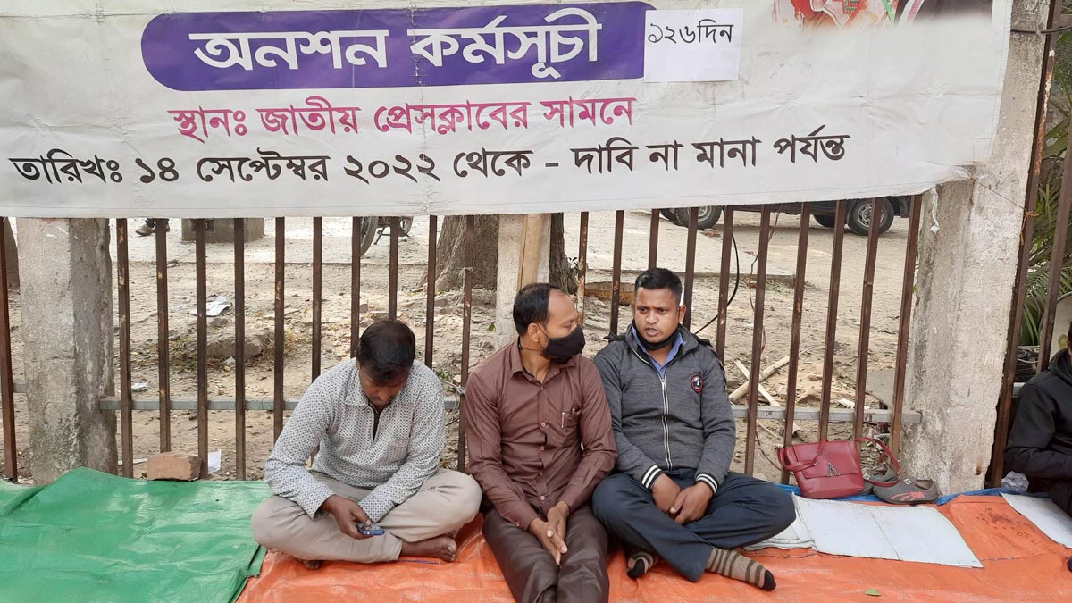 আন্দোলনের সমন্বয়ক মনির হোসেন শোভন বলেন, চাকরি স্থায়ী করার দাবিতে আজসহ ১২৬ দিন ধরে আন্দোলন করছি। এই চাকরির মাধ্যমে আমরা দুমুঠো খেয়ে বেঁচে থাকতে চাই। আমাদের সন্তানদের সর্বনিম্ন প্রয়োজন মেটানোর সুযোগ চাই। আমরা প্রয়োজনে এখানেই মারা যাব, তাও আন্দোলন চালিয়ে যাব।