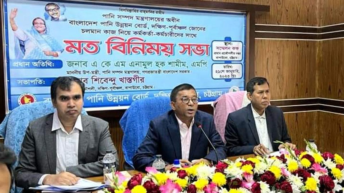 শনিবার চট্টগ্রামে পানি উন্নয়ন বোর্ড ও পানিসম্পদ রক্ষণাবেক্ষণ বিভাগের কর্মকর্তাদের সঙ্গে মতবিনিময়কালে প্রধান অতিথির বক্তব্যে তিনি এ কথা বলেন।