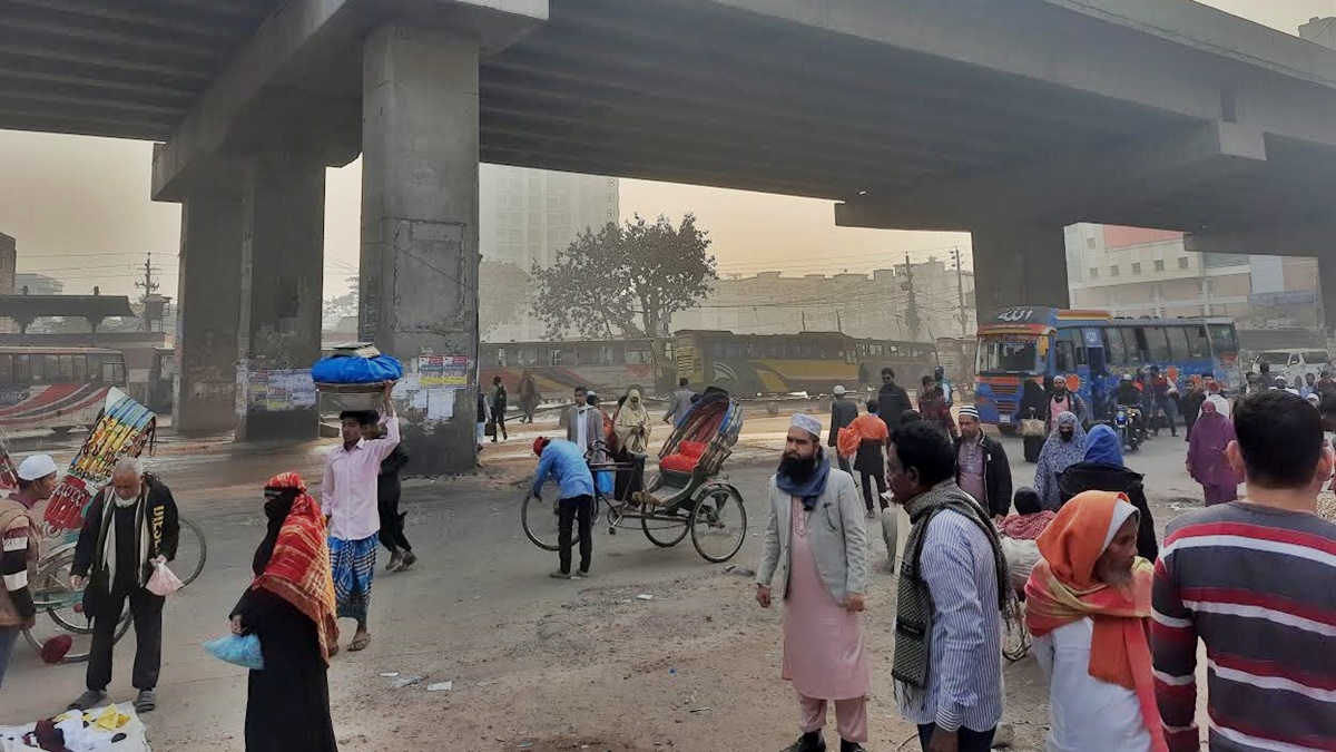 রোববার (২২জানুয়ারি) সকাল ৭ টা থেকে ৯টা পর্যন্ত খিলক্ষেত, বিমানবন্দর, উত্তরা ও আব্দুল্লাহপুর সড়কে এই দৃশ্য দেখা গেছে।