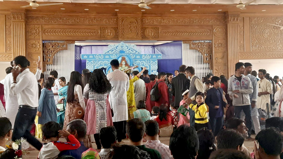 জগন্নাথ হল প্রাঙ্গণে পূজা অর্চনার পাশাপাশি আনন্দে মেতে উঠেছেন দর্শনার্থীরা। শিশুদের খেলার জন্য আছে নানা আয়োজন। বিভাগের মণ্ডপগুলোতে পুরোহিতরা বিভিন্ন ধরনের বাণী ভক্তদের নিয়ে একসঙ্গে পাঠ করছেন। বিভিন্ন বিভাগ ও হলের শিক্ষার্থীরা অংশগ্রহণ করছেন এতে। সব মিলিয়ে পূজাকে ঘিরে উৎসবমুখর পরিবেশ বিরাজ করছে জগন্নাথ হল প্রাঙ্গণে। পরিবার-পরিজন নিয়েও অনেকে এসেছেন পূজা দেখতে।
